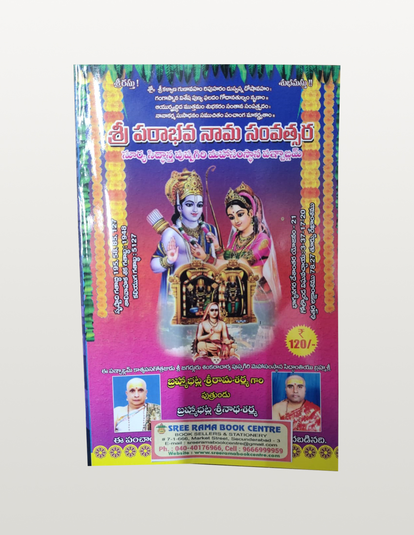 “శ్రీ పరాభవ నమ సంవత్సర సూర్య సిద్ధస్త్య పుష్పగిరి మహాసంస్థాన పంచాంగము” is a traditional Hindu Telugu panchangam for the Parabhava Nama Samvatsara year, offering detailed astrological and calendar information based on the movements of the sun and other celestial bodies. It provides daily thithi, nakshatra, yoga, karana, muhurthams, planetary positions, festival dates, and important religious observances, helping individuals and families plan rituals, ceremonies, and everyday activities in harmony with cosmic time.